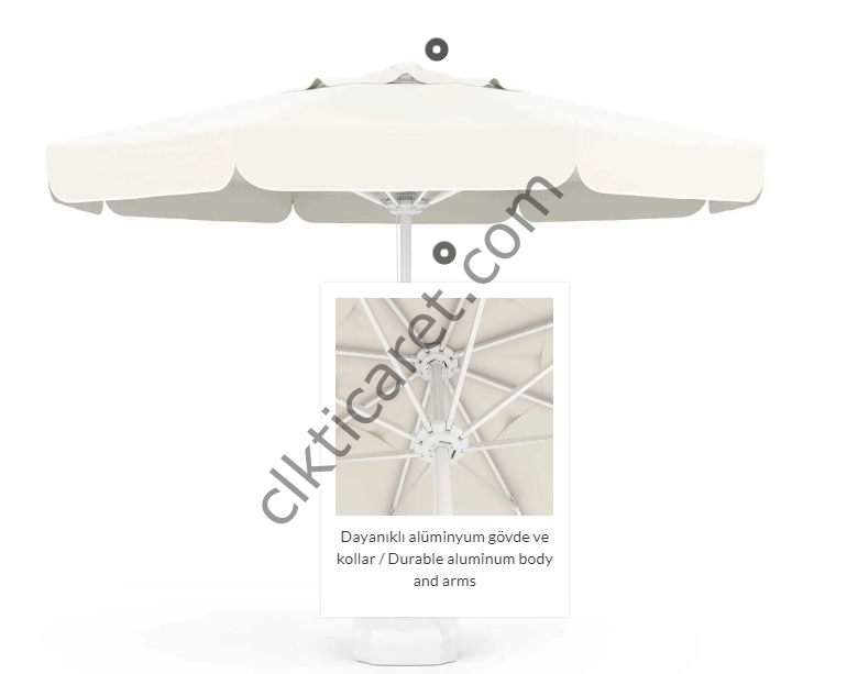 CLK 3 mt Mega İpli Yuvarlak Beyaz Profil Bahçe Cafe Otel Şemsiyeleri