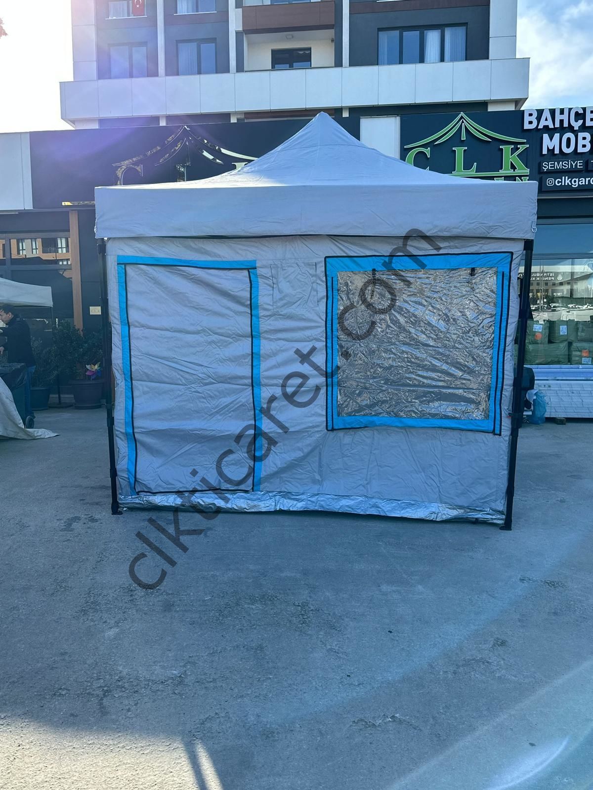 CLK 3x3 40mm Katlanır Gazebo Portatif Kamp Çadır Açık Gri Mavi Detay