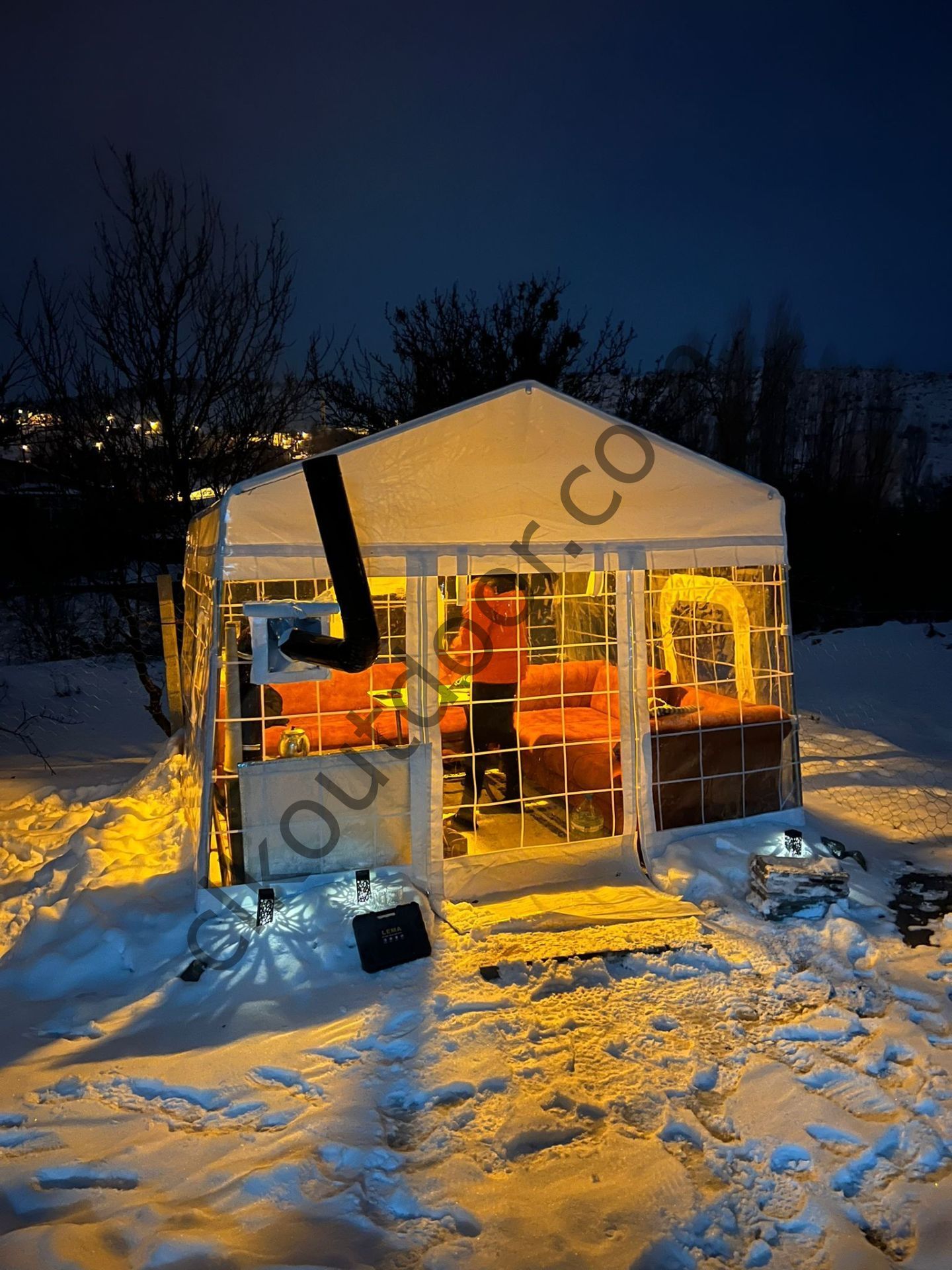 * İçinde Soba Yakılabilir, Baca Çıkışı Standarttır.