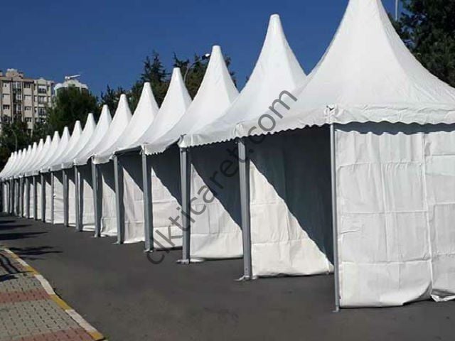 Yan kenarları açık veya kapalı olarak kiralama yapılabilen çadırlar kalın alüminyum profil demonte çadırlardır. Işık geçirmez kumaştır. Zemine sabitlemek veya ağırlık ile kullanılması gerekmektedir.