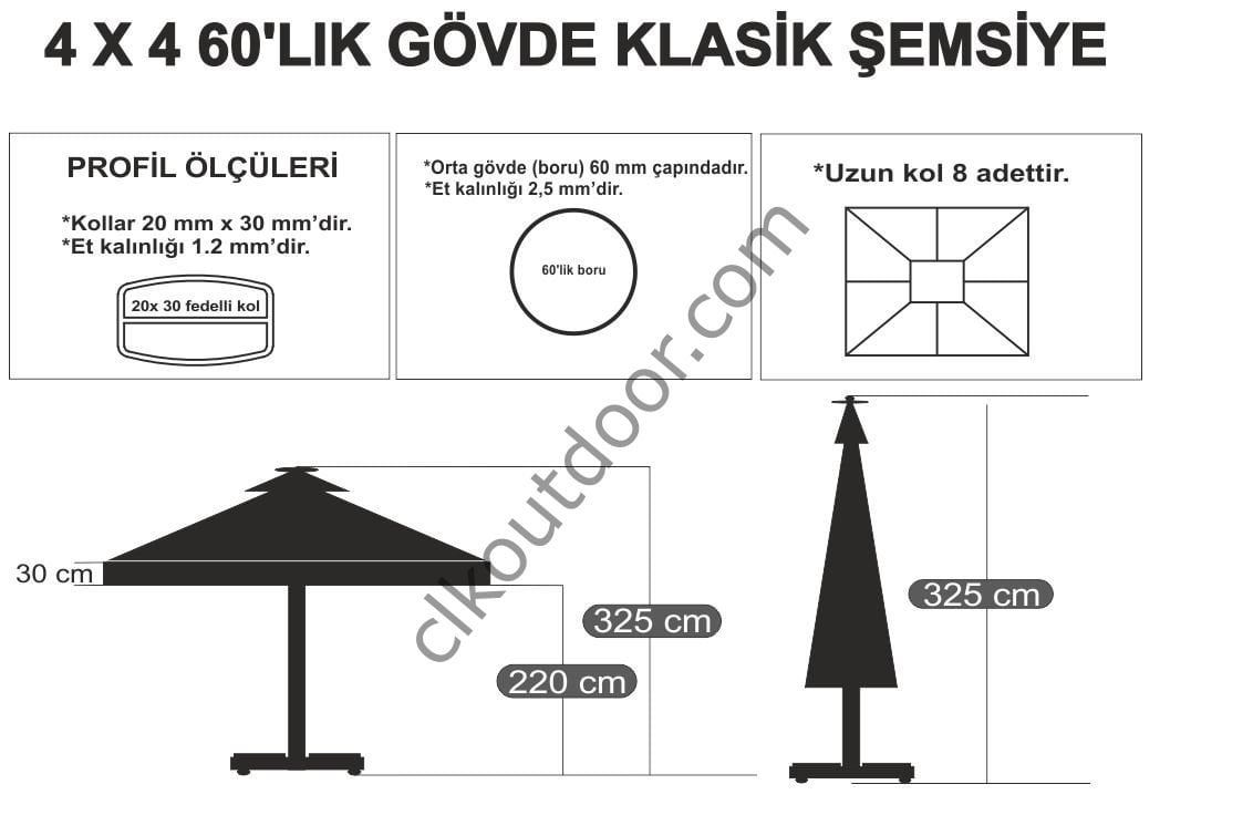 CLK 4x4 Metre Bacalı Mega Q60 Şemsiye Bahçe Cafe Havuz Otel Restorant Şemsiyeleri
