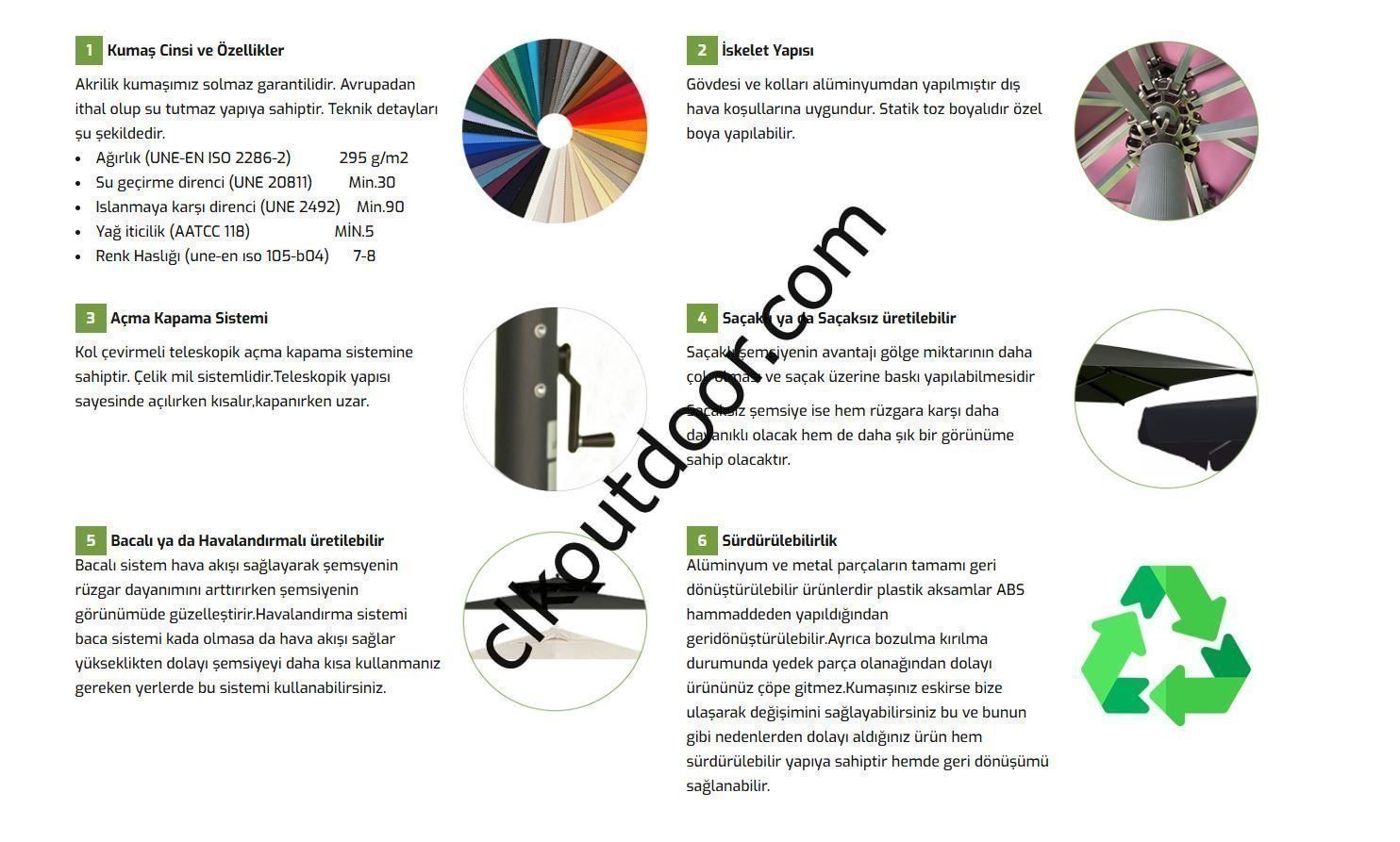 CLK 6x6 Metre Saçaklı LUX Model Krank Sistem Teleskopik Şemsiye Q90 Profil