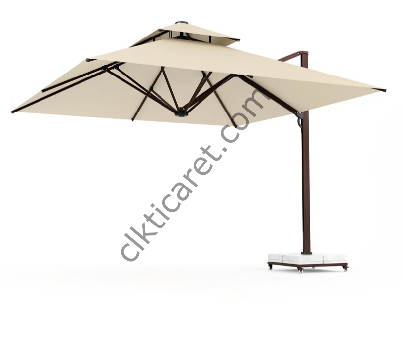 CLK Albatros 4x4 Metre Yandan Kollu Krem Bahçe Havuz Otel Şemsiyesi