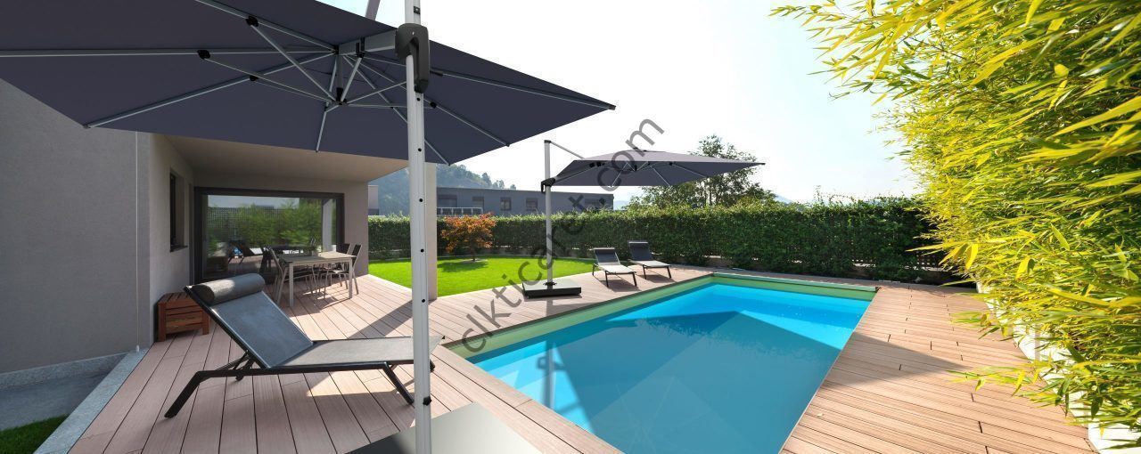 CLK Mykonos Şemsiye 55 X 80 mm ana taşıyıcı direk ve 17 X 25 mm kollardan oluşan CLK yandan kollu şemsiyemiz , yandan direkli olması sayesinde güneşten ve olası yağmurlardan koruduğu 9 m2 alanı en konforlu biçimde kullanılmasını sağlamaktadır.